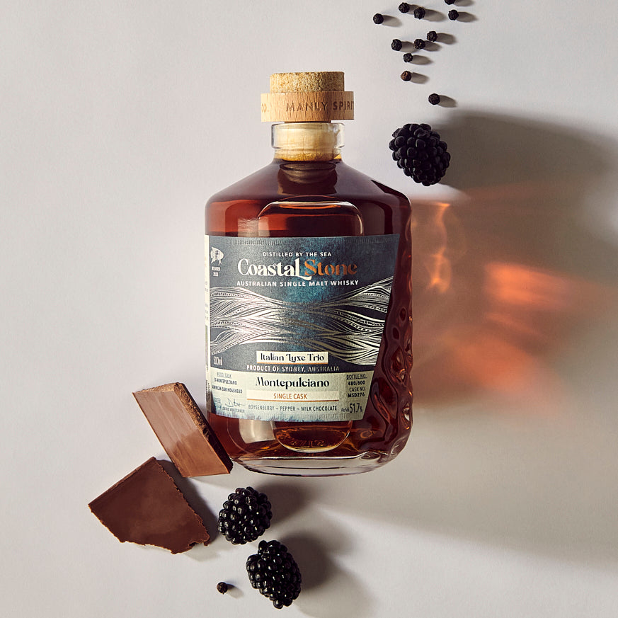 Ex-Montepulciano casks from Australian winery Mino & Co have given incredible complexity to this whisky. Taste flavours of boysenberry, pepper and milk chocolate.